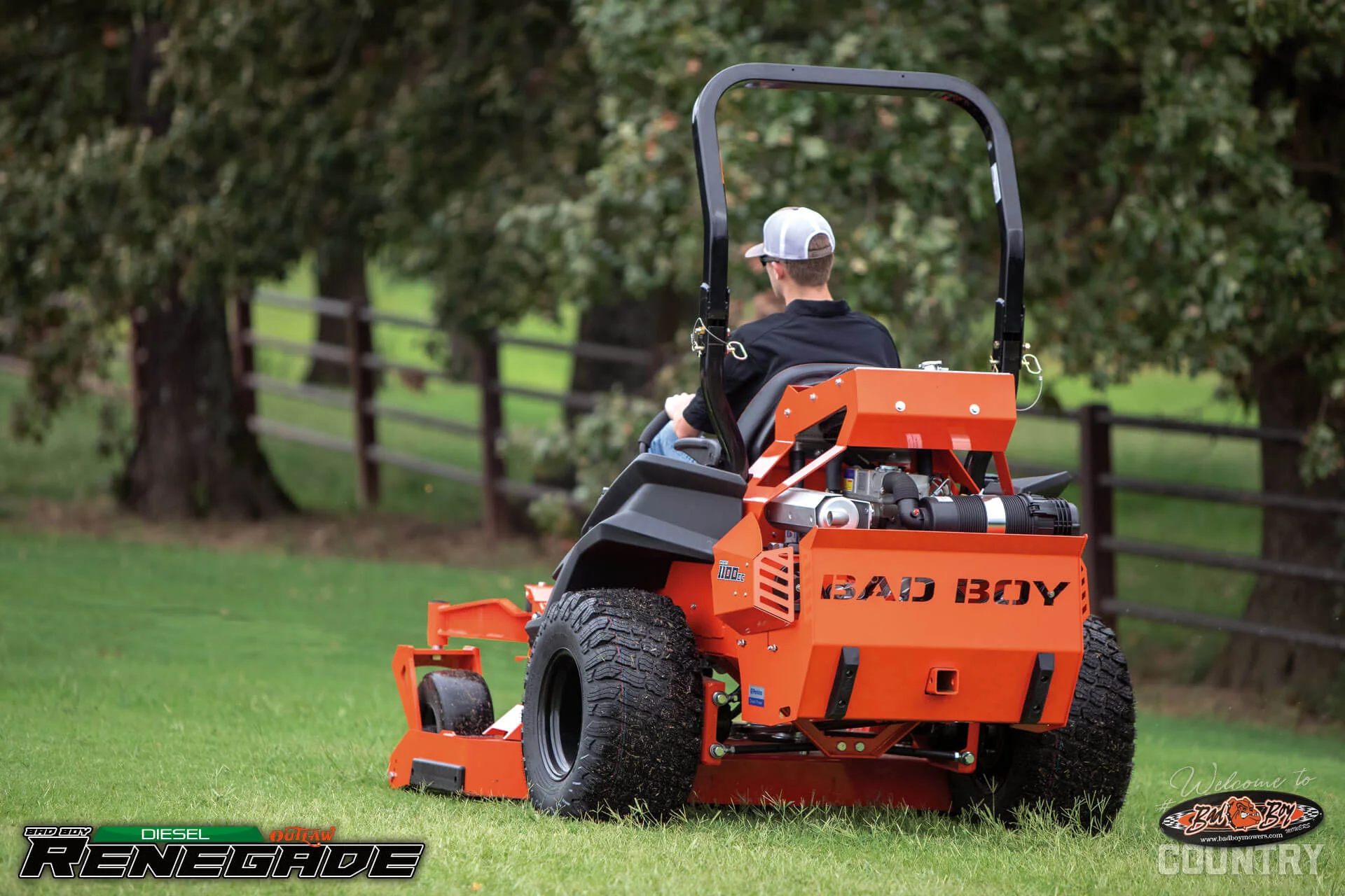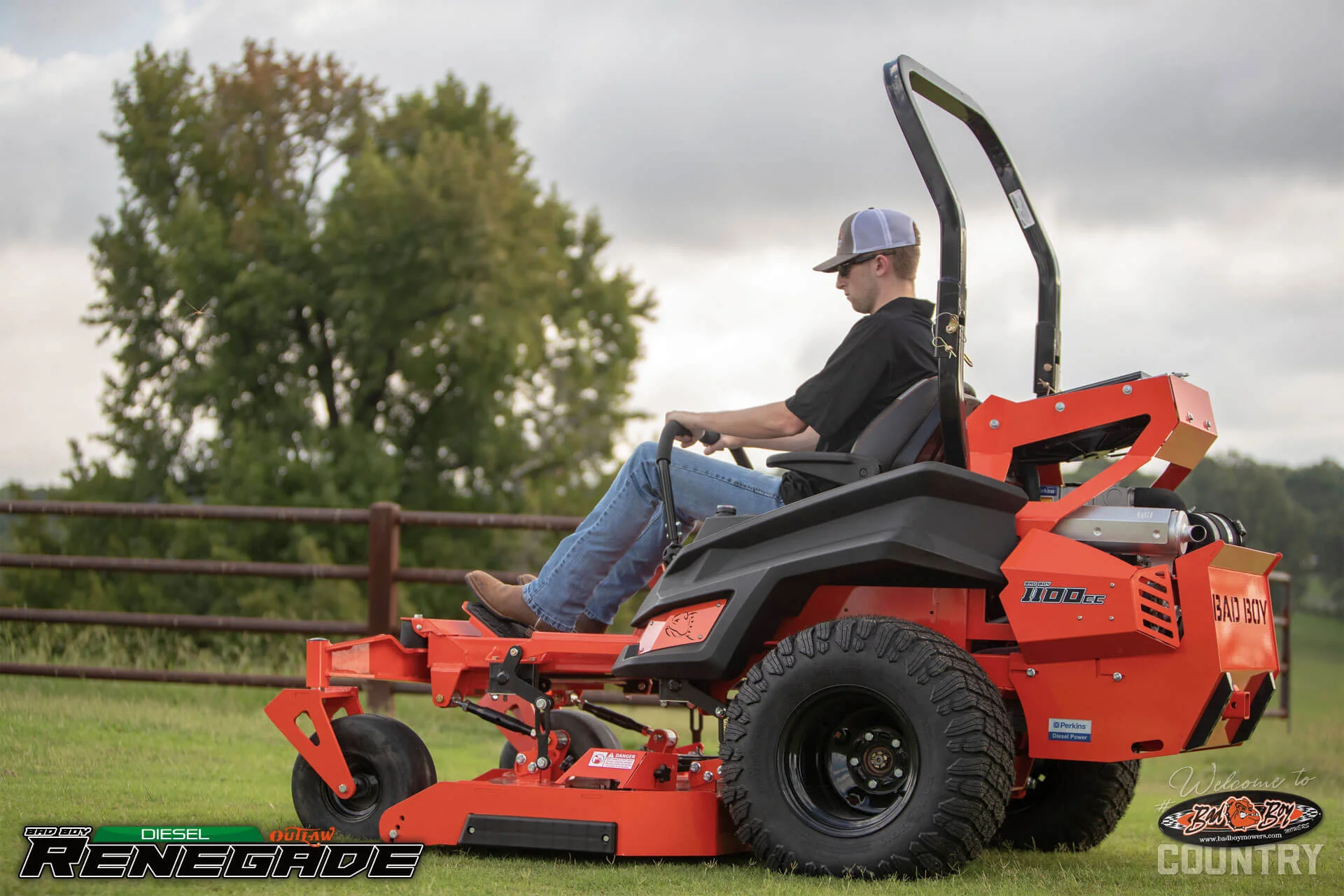 The Bad Boy Diesel is a combination of comfort, durability and cutting-edge innovation that sets itself apart from any other commercial-grade zero-turn mower. Strapping a 1100cc Perkins Diesel engine on our newest lineup of Outlaw mowers delivers pure, longlasting, powerful performance.